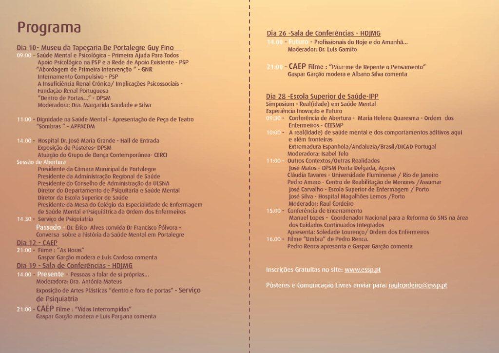 A realizar pela Escola Superior de Saúde em colaboração com o Departamento de Psiquiatria e Saúde Mental – ULSNA, EPE, no dia 28 DE OUTUBRO DE 2016.