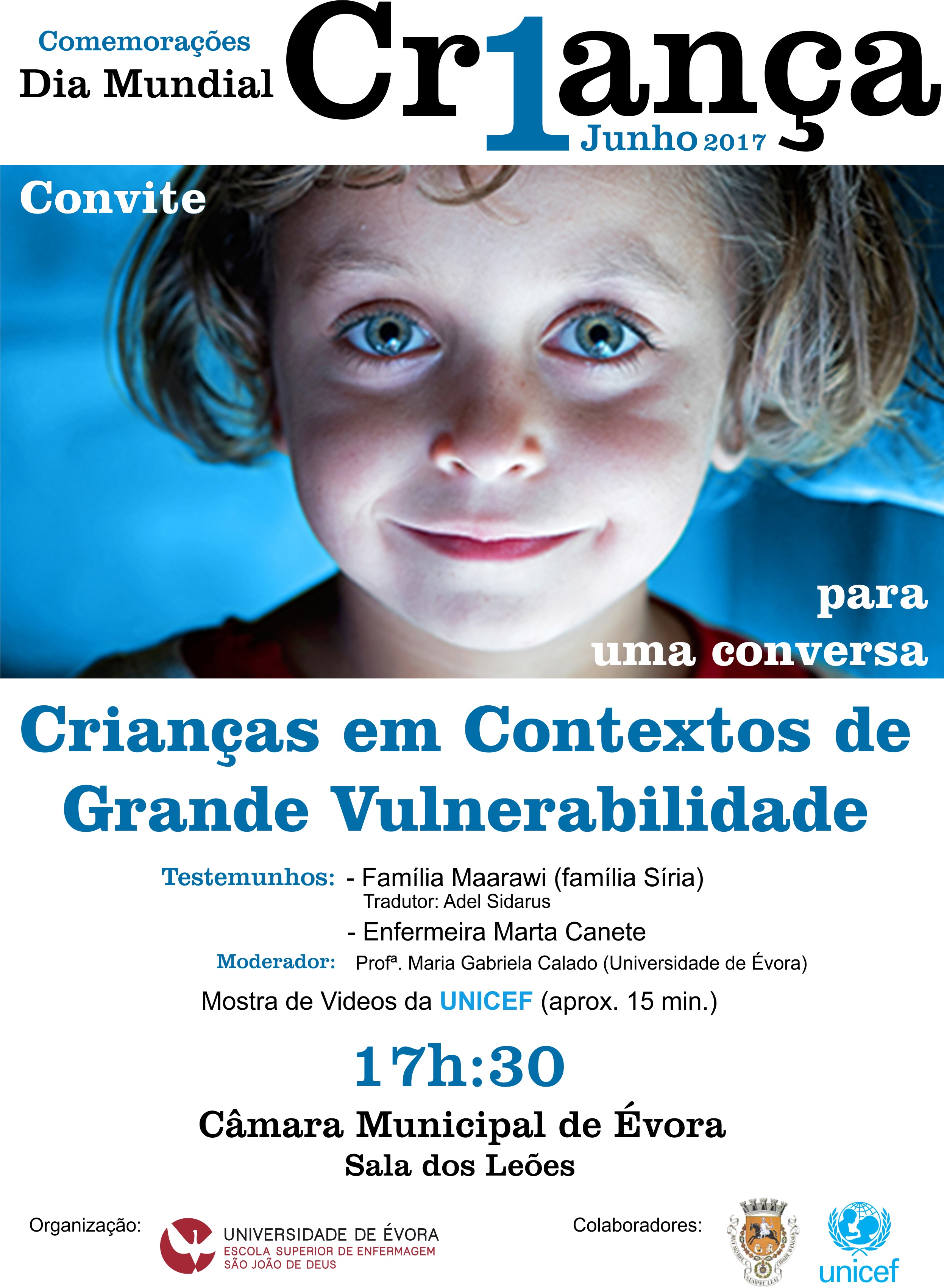 A Escola Superior de Enfermagem São João de Deus da Universidade de Évora, convida toda a comunidade para assinalar o dia Mundial da Criança, participando numa conversa à volta do tema, Crianças em contextos de grande vulnerabilidade.